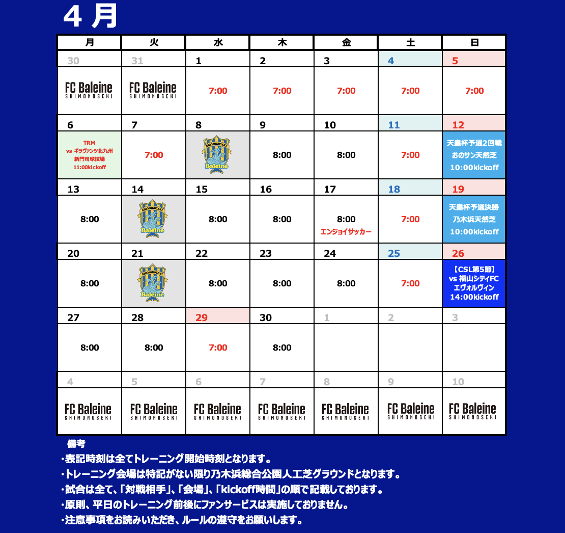 SCHEDULE -月間日程-
